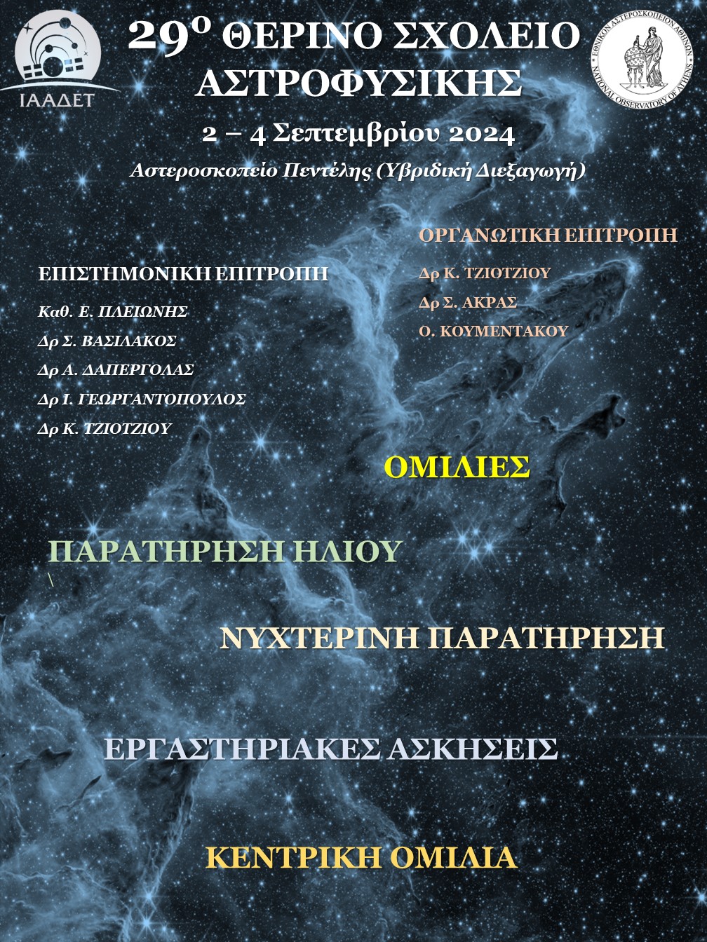 29o Θερινό Σχολείο Αστροφυσικής για μαθητές/τριες Λυκείου 2-4 Σεπτεμβρίου 2024.